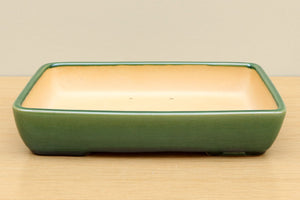 (C) High-quality Glazed Rectangle Bonsai Pot - 9" Bottle Green